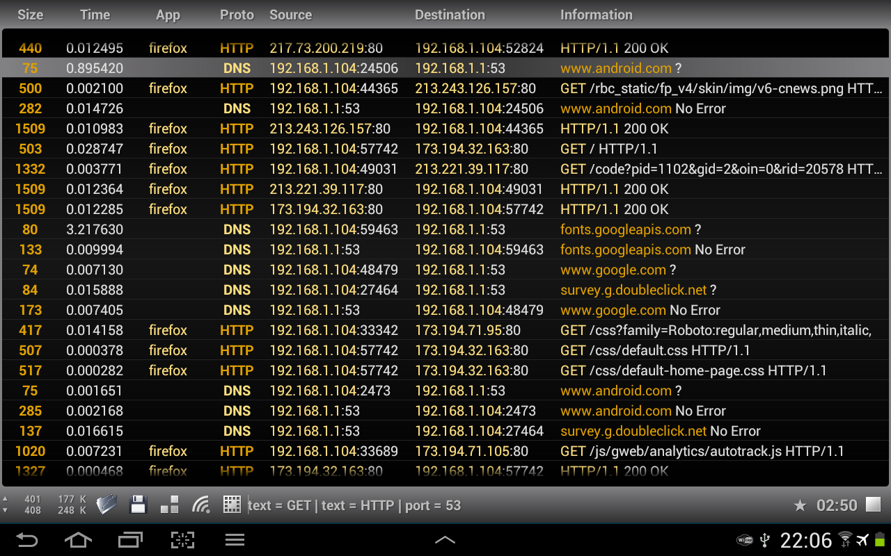 Mobile network packet sniffer for ROOT ARM droids:★ Two-part scheme: Java GUI controls special ARM engine